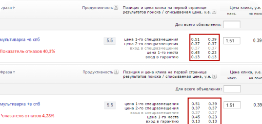 Однако помимо ставок на аукционе, Яндекс и Google также учитывают качество рекламного аккаунта. Данный показатель рассчитывается специальными алгоритмами, исходя из полноты и правильности заполнения информации в тексте объявлений, подбора ключевых слов, CTR (процента кликов по объявлению от общего числа его показов).